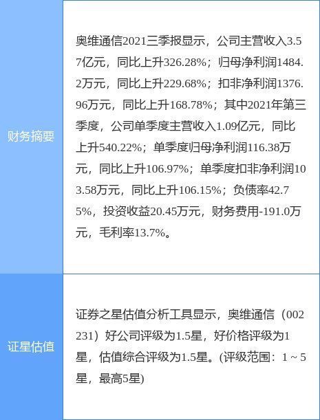 奥维通信业绩快报:2021年度净利达2333万元 同比